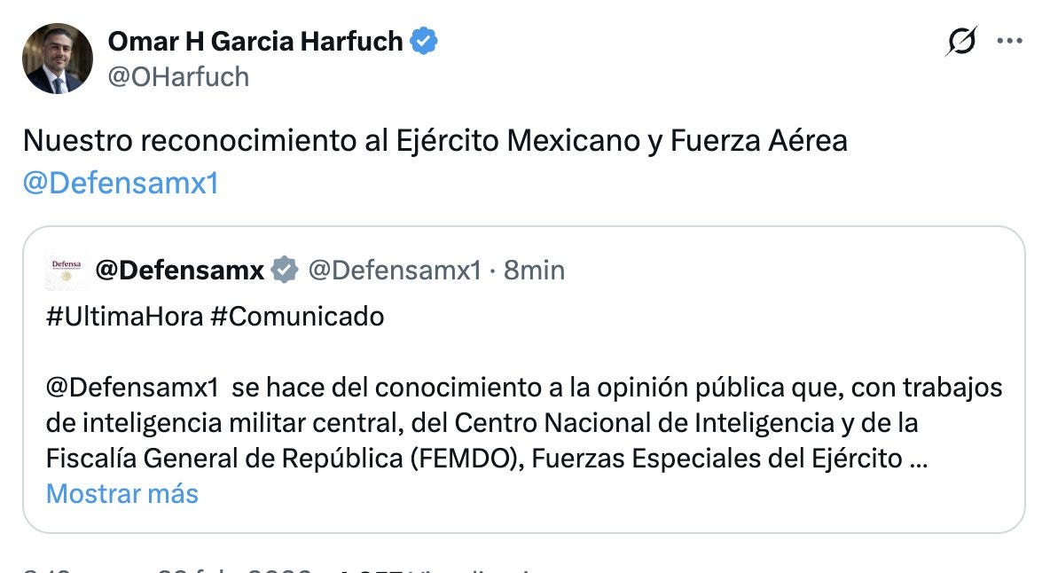 La noticia generó una explosión informativa en plataformas digitales, con millones de interacciones en tiempo real. Se compartieron ampliamente el comunicado de la Sedena, videos de bloqueos y despliegues militares. Predominaron: