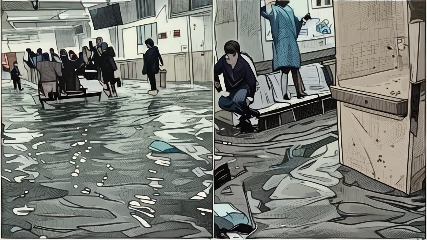 ¿Dónde están las bombas de agua? ¿Los protocolos de emergencia? Parece que se quedaron en la misma oficina donde guardan los sueños de un sistema de salud "como el de Dinamarca".