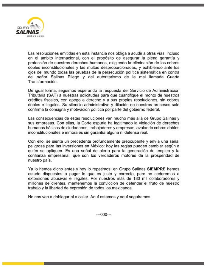 El trasfondo es explosivo. Salinas, un magnate crítico de López Obrador y cercano al gobierno anterior, enfrenta no solo esta sanción, sino ocho casos fiscales más que suman más de 48 mil millones de pesos, según Mexico Solidarity Media. La presidenta, que este mes rechazó un diálogo con el empresario y le exigió pagar directamente, parece haber encontrado en la SCJN un aliado para presionar a uno de los detractores de la 4T más visibles.