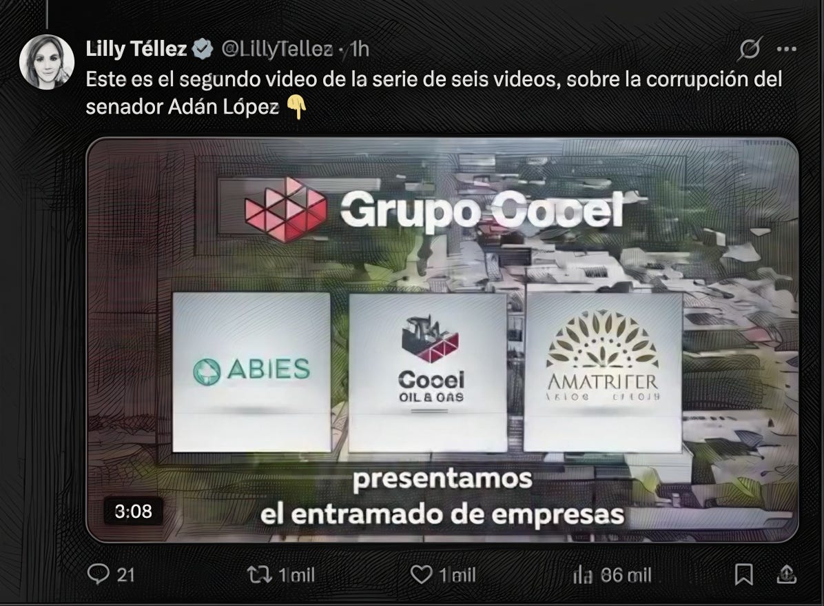 El video, difundido a través de las redes sociales, incluye imágenes de López en diferentes contextos, desde su etapa como senador hasta su cercanía con el ex presidente Andrés Manuel López Obrador. Téllez sostiene que López habría utilizado su influencia para obtener contratos públicos a cambio de comisiones del 5%, enriqueciendo ilícitamente a su círculo cercano.