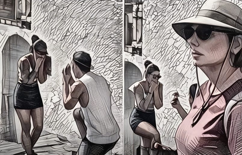 Ahora, ¿qué nos dice esto? Primero, que Santorini es un lugar tan turístico que incluso los momentos más íntimos pueden convertirse en un espectáculo público. Segundo, que no todos tienen el mismo concepto de privacidad o decencia. Y tercero, que a veces la vida es más divertida (o patética, según se mire) de lo que planeamos.