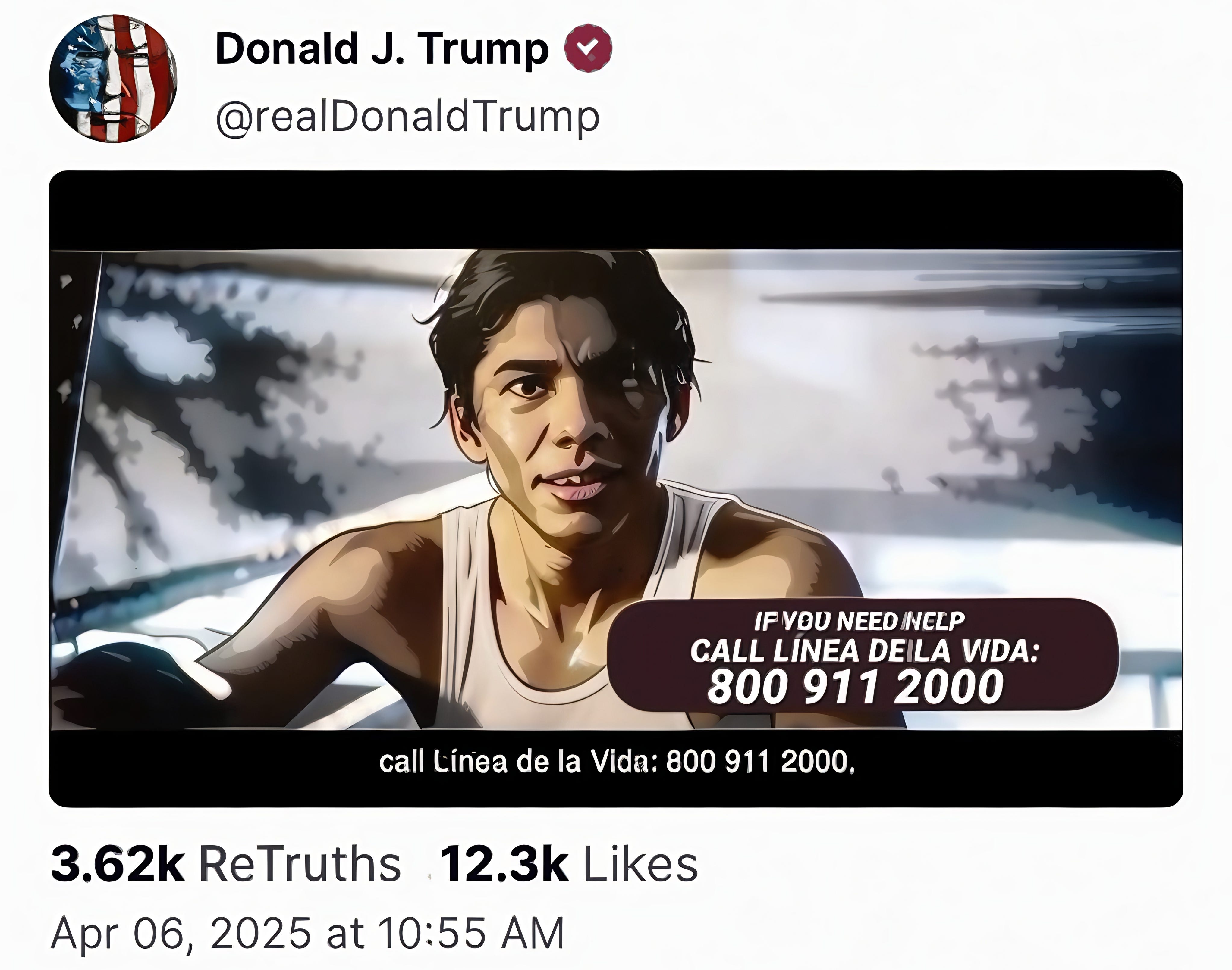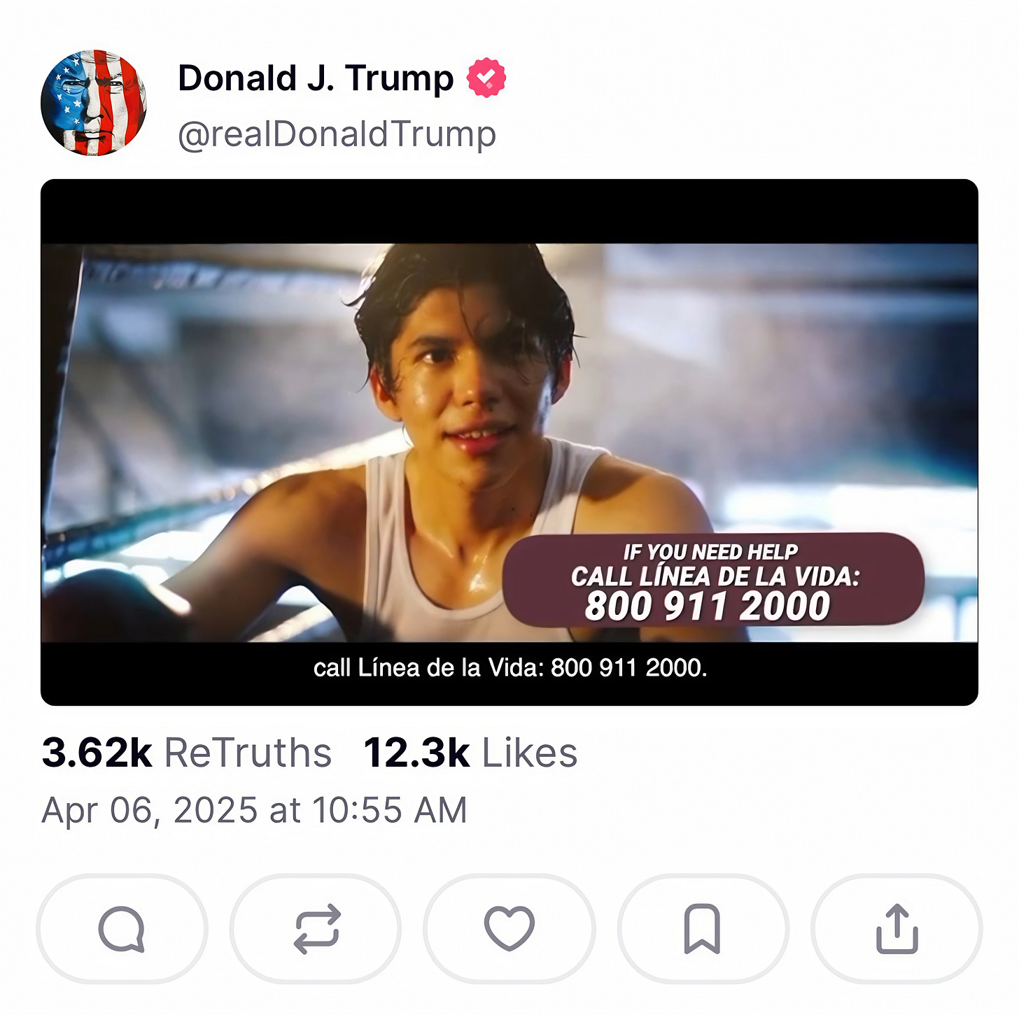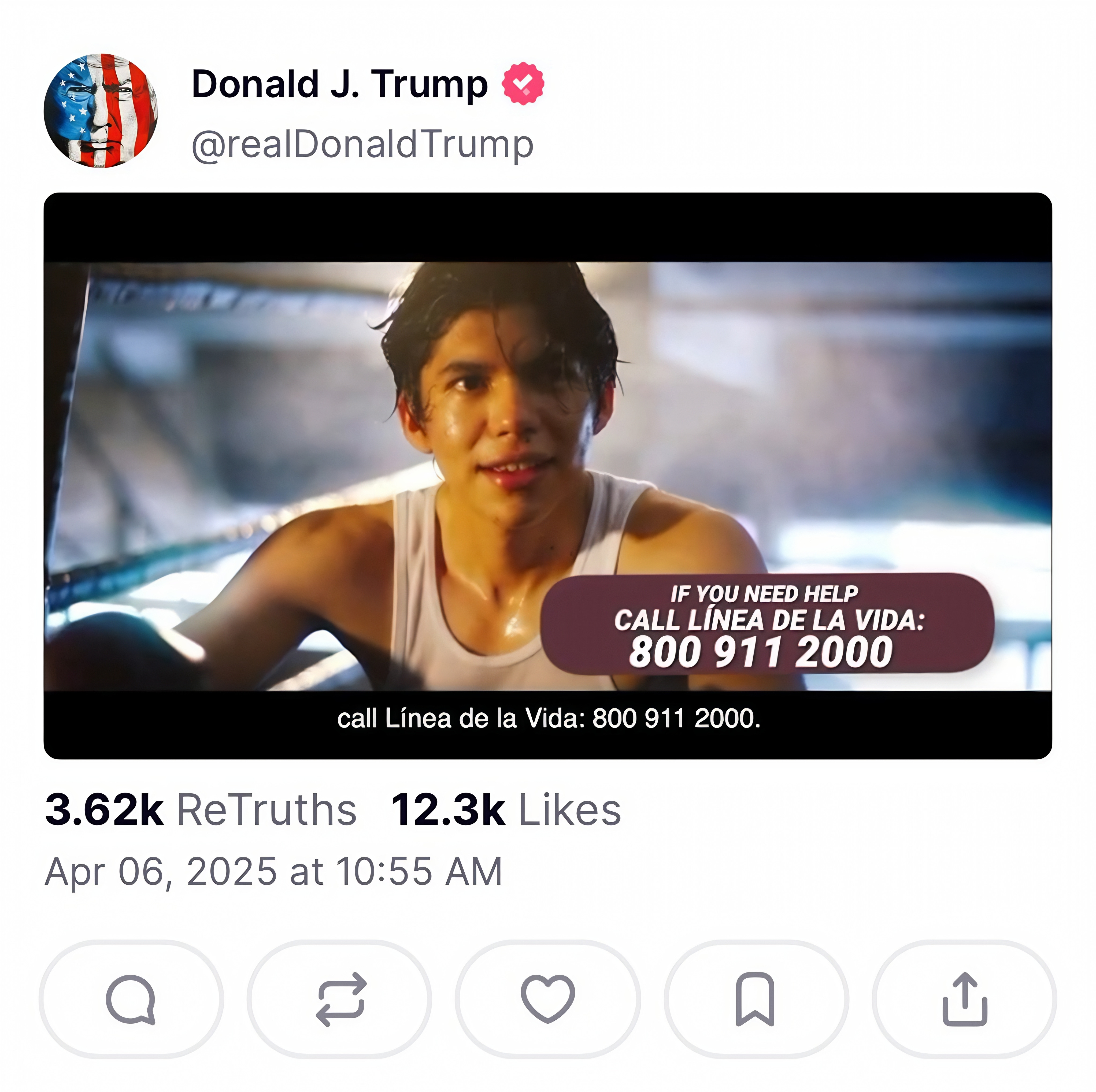 CDMX.- El presidente de Estados Unidos, Donald Trump, sorprendió este domingo al compartir en su cuenta de Truth Social una campaña del Gobierno de México destinada a combatir el consumo de fentanilo. La iniciativa, promovida por la presidenta mexicana Claudia Sheinbaum, incluye un video que destaca la Línea de la Vida (800 911 2000), un servicio de atención ciudadana disponible las 24 horas para apoyar a personas con problemas de adicción. El post de Trump, publicado a las 10:55 de la mañana, ha generado revuelo con 32.2 mil "ReTruths" y 12.3 mil "Likes", según capturas compartidas en X.