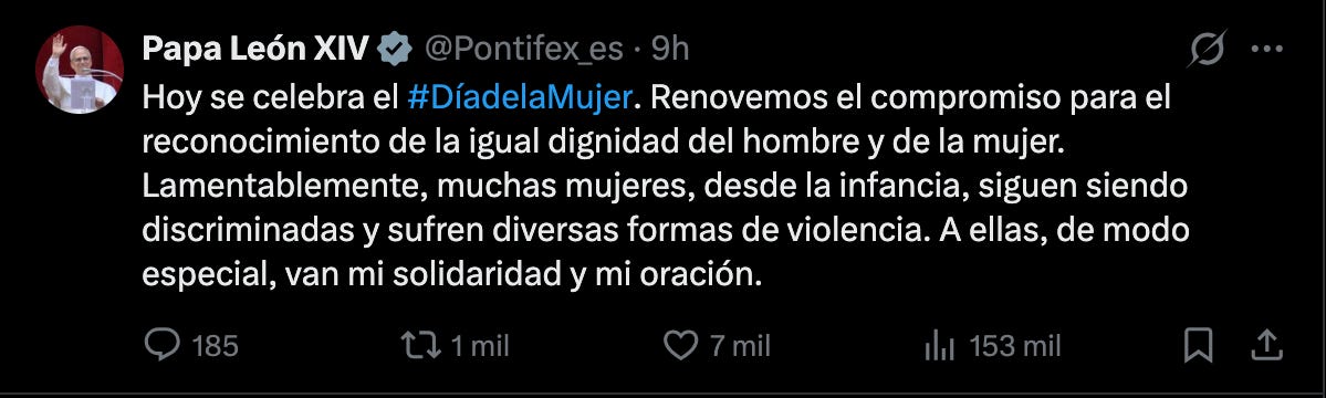 Papa León XIV expresa solidaridad con mujeres víctimas de violencia en el 8M