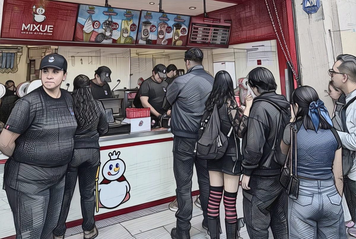 Mixue no es cualquier marca emergente: según sus reportes y datos de analistas internacionales, ya opera más de 53 mil sucursales en el mundo (la mayoría en China), superando en número de locales a McDonald’s y Starbucks. Su modelo es brutalmente sencillo: precios bajos, franquicias baratas y volumen alto. Lleva años conquistando mercados emergentes con esa fórmula y ahora da el salto formal a México (primera parada en América Latina, aunque ya había presencia informal en redes).