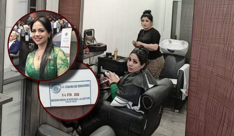 CDMX.- En pleno 2026, cuando México sigue lidiando con hospitales sin medicinas y escuelas en ruinas, el Senado nos regala un nuevo capítulo de hipocresía: un salón de belleza exclusivo en el segundo piso de la torre del Hemiciclo, operativo solo en días de sesiones plenarias de 7 a 14 horas. Revelado por Proceso y Reforma, el espacio –equipado con sillones, espejos, lavabos y maquillaje– fue captado en video mientras la senadora del PVEM, Juanita Guerra Mena, se aplicaba un tinte en horario laboral, como si el erario fuera su peluquería personal.