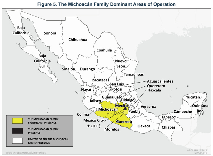 - La Familia Michoacana: Actúa en la Ciudad de México, Michoacán, Guerrero y Morelos.