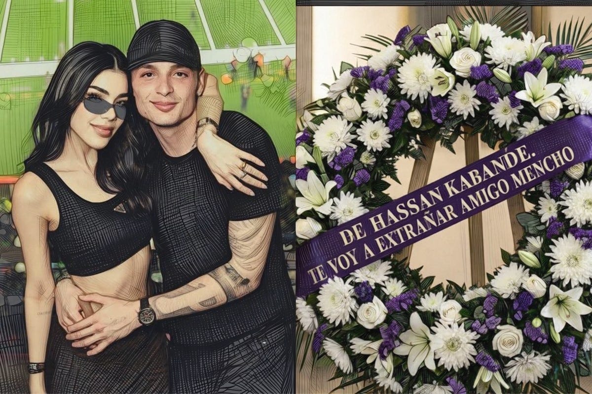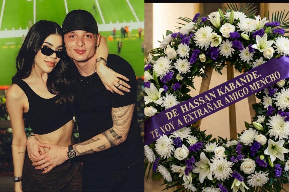 CDMX.- Un post viral de la cuenta México Shady News (más de 4 millones de vistas) asegura que Hassan Kabande Laija (Peso Pluma) y Kenia Os enviaron un ostentoso ramo al funeral de Nemesio Oseguera Cervantes, alias El Mencho, con una cinta que dice “De Hassan Kabande… te voy a extrañar amigo Mencho”. La imagen muestra la corona morada y blanca junto a una foto de la pareja. El problema: todo es falso.