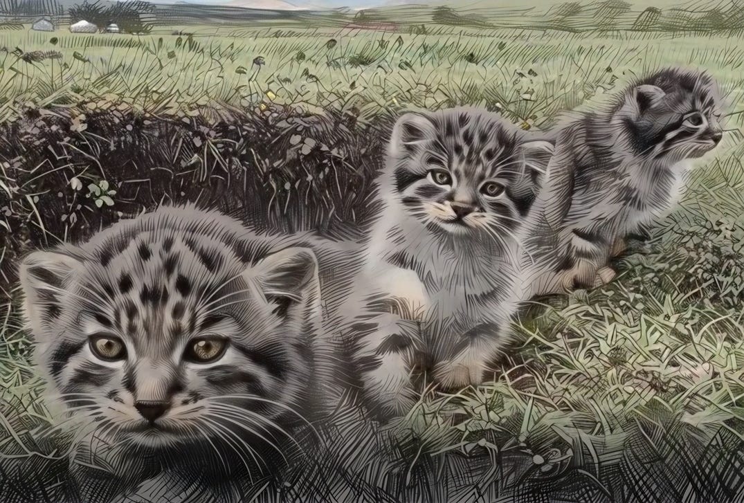 ¡Familia de gatos de Pallas captada en Qinghai: los felinos más gruñones del planeta salen a escena!