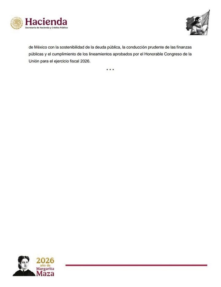 En papel suena limpio. En la realidad es puro parche. Esta es la tercera vez en 2026 que Hacienda sale a cambiar deuda corta por deuda larga porque los vencimientos se le están amontonando. No reduce un solo centavo del saldo total; solo lo empuja más lejos en el calendario. Mientras el gobierno celebra “confianza de los inversionistas”, lo que hace es reconocer, sin decirlo, que el ritmo de gasto y los déficits acumulados le han dejado un colchón de obligaciones a corto plazo que ya no puede cubrir sin malabares.
