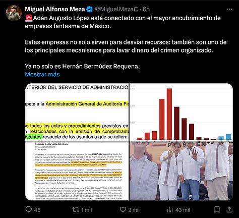 El Artículo 22 del Reglamento Interior del Servicio de Administración Tributaria, que Meza destaca, obliga a la Auditoría Fiscal a investigar y sancionar la emisión de facturas por operaciones inexistentes. Sin embargo, las cifras sugieren una omisión deliberada. La recuperación en la detección de empresas fantasma tras su salida en febrero de 2024 —194 en 2024 y 332 en lo que va de 2025— levanta sospechas de un encubrimiento sistemático. ¿Fue incompetencia o connivencia? Las conexiones familiares y políticas, como los 478 millones de pesos que operadoras vinculadas a su círculo recibieron en Chiapas, alimentan el debate.