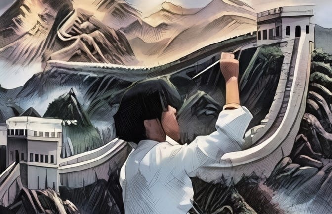 Bihuashiyuge, que lleva años documentando su proceso en Instagram (@relief_muralart) y YouTube, no inventa trucos digitales: trabaja con referencias fotográficas, aplica capas de material y pinta a mano para dar volumen y realismo. Uno de sus trabajos más compartidos es una versión en relieve de la Gran Muralla China, convertida en un “portal” inmersivo. En plena era de IA que genera imágenes en segundos, ver a alguien sudando y esculpiendo a escala humana genera fascinación y también una crítica silenciosa: mientras el arte contemporáneo a veces se reduce a conceptos vacíos o bananas pegadas, aquí hay oficio puro, esfuerzo físico y talento tangible.