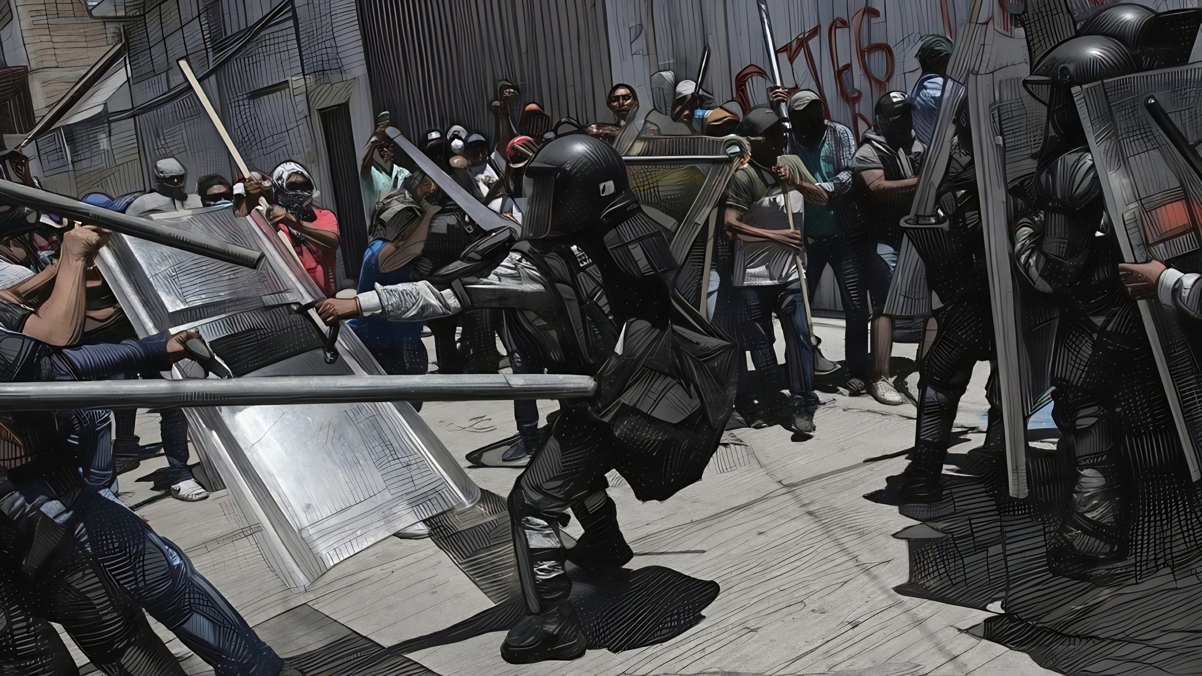 Los docentes marcharon hacia las oficinas del INE con la intención de dañarlas, pero fueron interceptados por agentes antimotines. Superados en número, los guardias enfrentaron agresiones con palos y piedras, y los manifestantes les arrebataron escudos y bastones. Durante el enfrentamiento, un agente activó una granada de gas lacrimógeno que detonó cerca de los maestros, y posteriormente se lanzaron más artefactos, llenando de gas las calles aledañas.