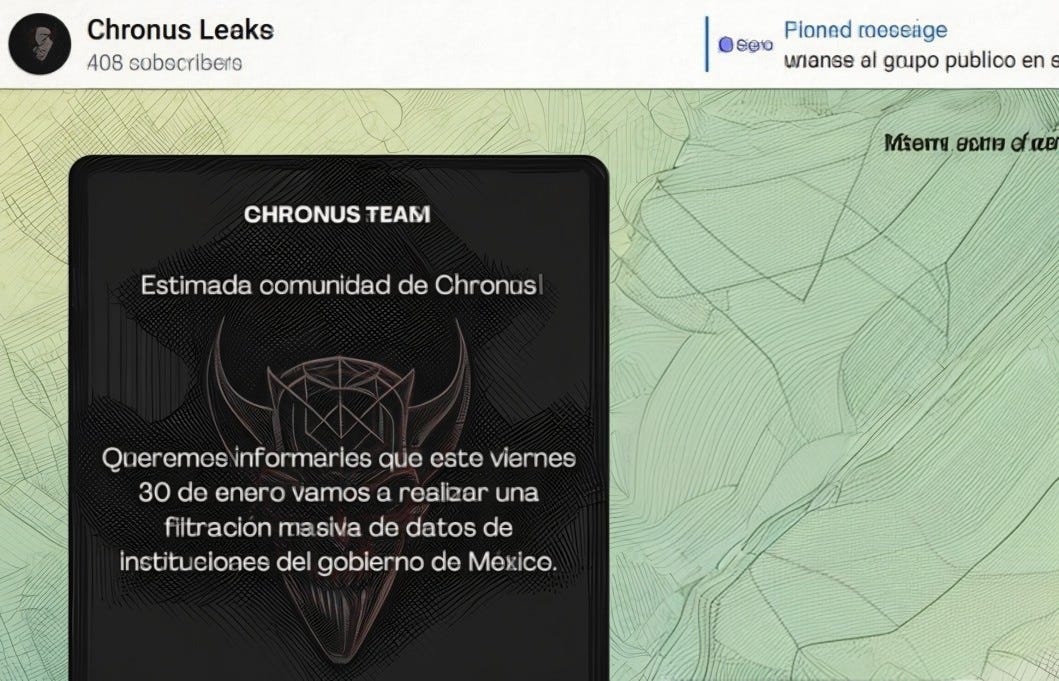 CDMX.- El grupo de ransomware Chronus, que ya ha golpeado duramente a instituciones mexicanas, amenazó con una filtración masiva de datos este viernes 30 de enero, según alertó el experto en OSINT Iván Castañeda en X. Hasta ahora, el silencio oficial genera más dudas que certezas. En posts recientes, como el de Ignacio Gómez Villaseñor, se detalla cómo Chronus exfiltró información de la Guardia Nacional, exponiendo a miles de agentes a riesgos del crimen organizado, y admitiendo que fue “ridículamente fácil” acceder a bases de más de 20 dependencias federales como SAT e IMSS entre diciembre de 2025 y enero de 2026.