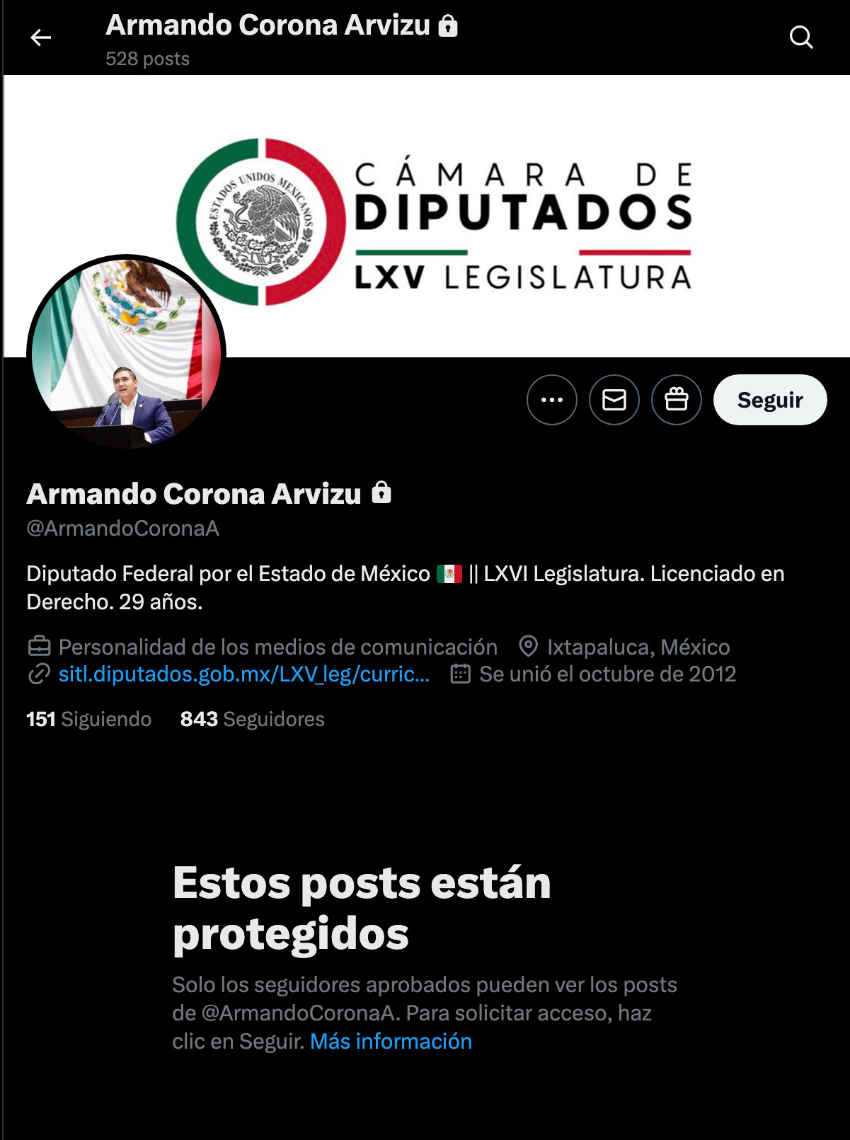 El debate sobre esta ley ha tomado un giro irónico con el diputado federal Armando Corona Arvizu, impulsor de la iniciativa, quien protegió su cuenta de X tras la polémica, limitando el acceso a sus publicaciones y dejando a sus 843 seguidores sin respuesta directa. Representante de Morena por el Estado de México y licenciado en Derecho con 29 años, Corona, parece haber cerrado las puertas a la crítica que él mismo busca regular, alimentando las sospechas sobre la intención real detrás de esta controvertida propuesta.