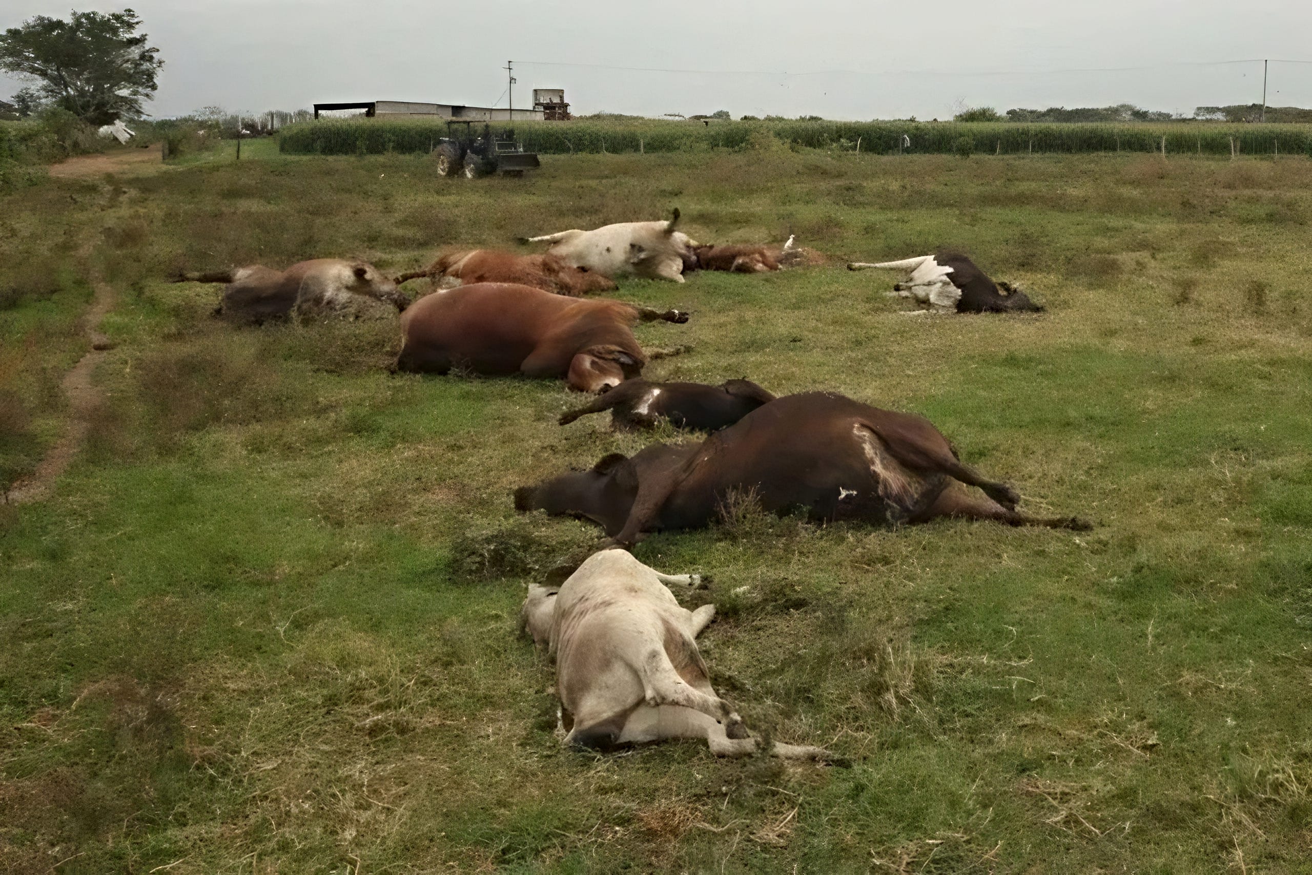 Tabasco.- En el municipio de Huimanguillo, Tabasco, se reportó la muerte masiva de más de 1000 reses, un hecho que ha generado alarma entre los productores de ganado y las autoridades locales. Según los primeros informes, la causa de este trágico evento sería el consumo de pollinaza contaminada, un subproducto utilizado como alimento para el ganado.