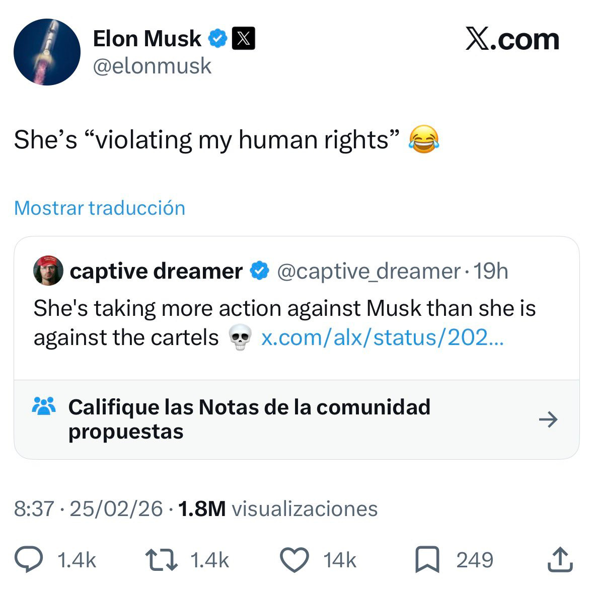 Musk se burla de Sheinbaum: ¿Derechos humanos o derechos del cártel?