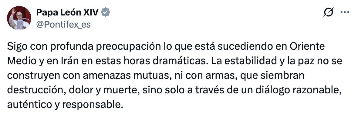 Papa León XIV urge diálogo ante escalada bélica en Medio Oriente