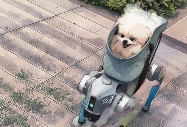China ya no pasea al perro: ahora el robot le hace el mandado al chihuahua mientras el dueño se rasca la barriga