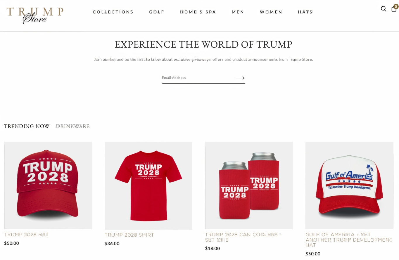 El sitio web oficial de Donald Trump ha lanzado una línea de productos con la leyenda "Trump 2028" con el lema: "Trump reescribe las reglas"