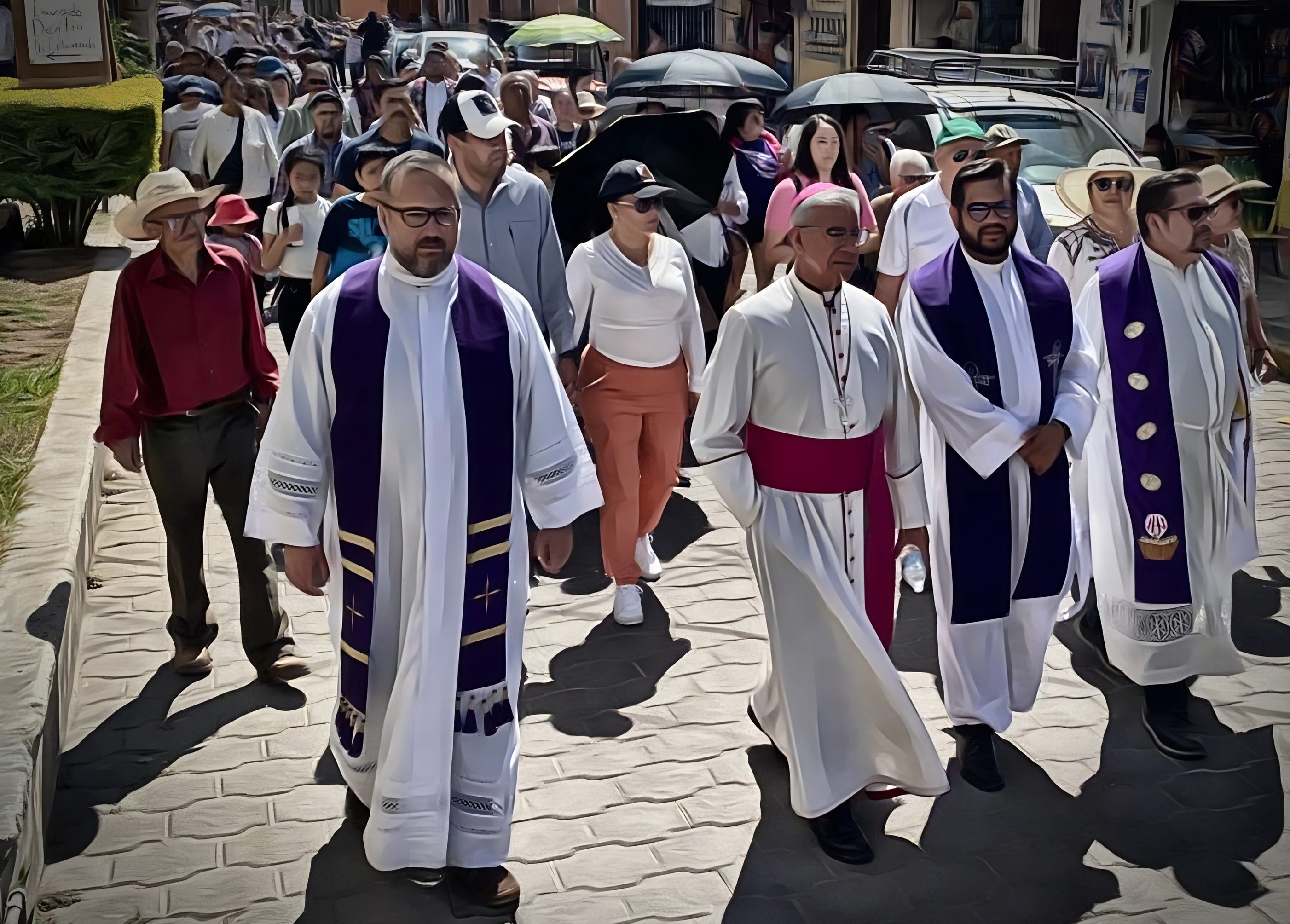 La procesión incluyó la imagen del Señor de la Ascensión y finalizó con una misa en la Parroquia Señor de la Ascensión, donde los participantes expresaron su dolor por el descubrimiento de restos.