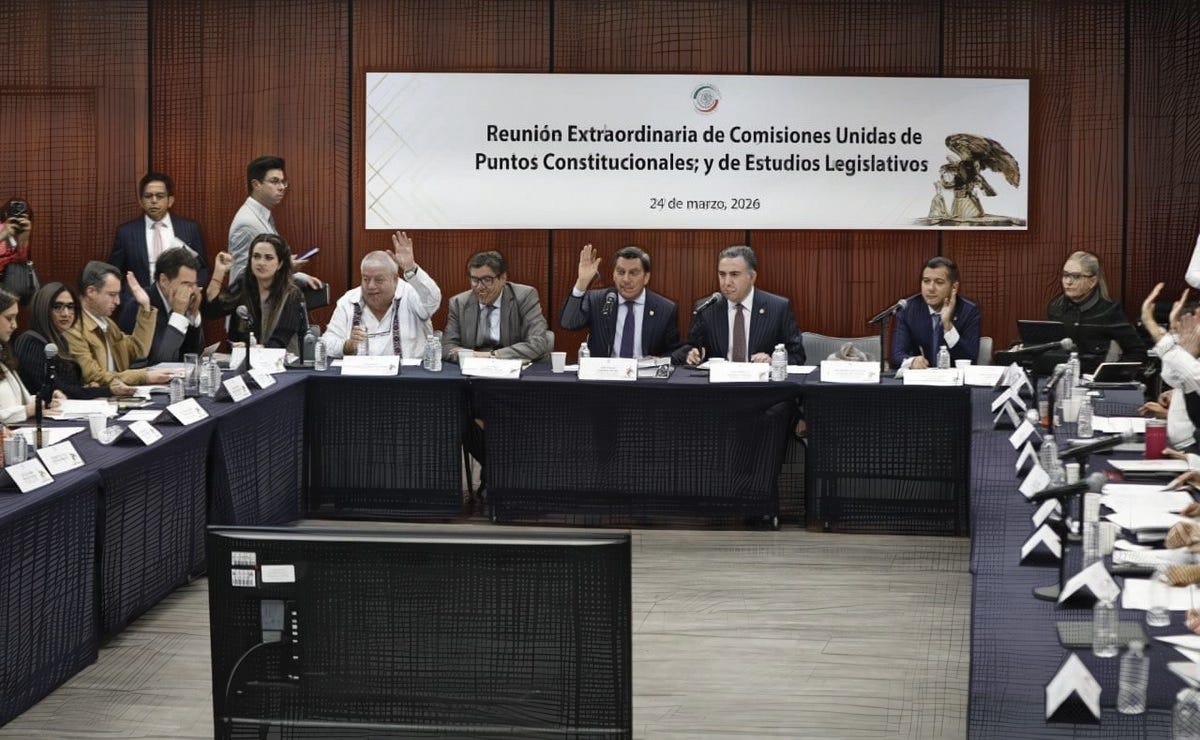 CDMX.- En un martes negro para la democracia mexicana, las comisiones unidas del Senado aprobaron este 24 de marzo de 2026 el dictamen del llamado Plan B de la reforma electoral enviada por Claudia Sheinbaum. Con 24 votos a favor (Morena más Verde) y 11 en contra (PAN, PRI y MC), el texto avanza al pleno. PT brilló por su ausencia parcial, y el show incluyó de todo: manotazos entre aliados, insultos de bajo nivel y “votos encargados” que la senadora priista Claudia Anaya denunció como trampa pura.