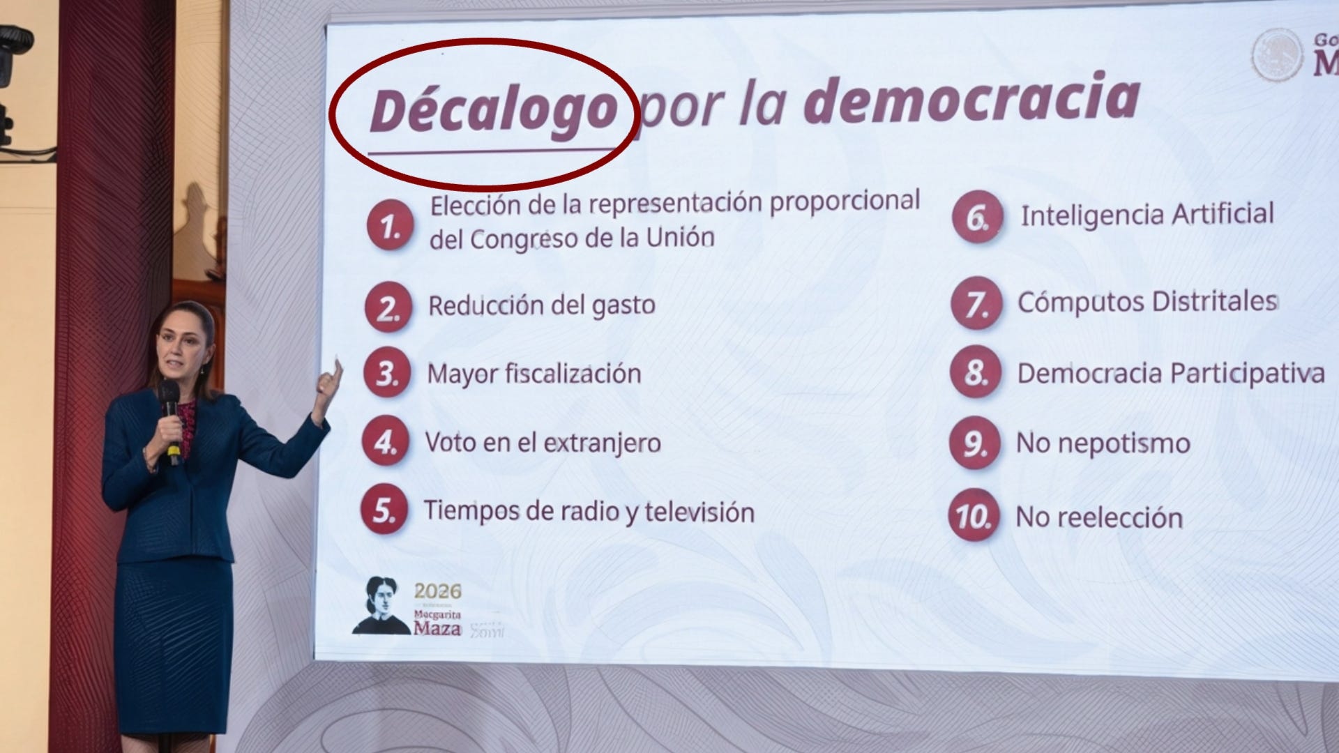 Error ortográfico en la mañanera: Sheinbaum presenta el “Décalogo por la Democracia” con tilde mal colocada
