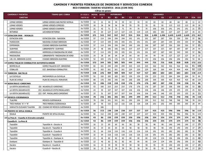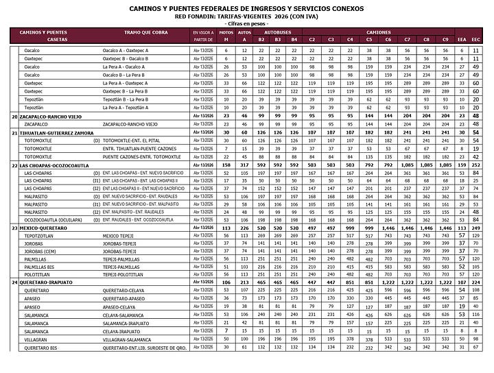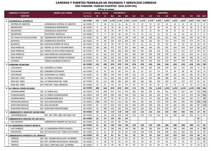 CDMX.- Desde este lunes 13 de abril, Caminos y Puentes Federales (CAPUFE) aplicó un ajuste oficial en las tarifas de todas sus autopistas. El aumento promedio ronda el 4.7%, aunque en algunos tramos llega hasta 9%, según el documento “Tarifas Vigentes 2026” publicado por el organismo. Ahora cruzar Chamapa-Lechería cuesta 69 pesos en auto (34 en moto), México-Querétaro 226 (113 moto), México-Puebla lo mismo y México-Cuernavaca 156 pesos para autos. El argumento oficial es cubrir operación, conservación y “mejora” de la red federal.