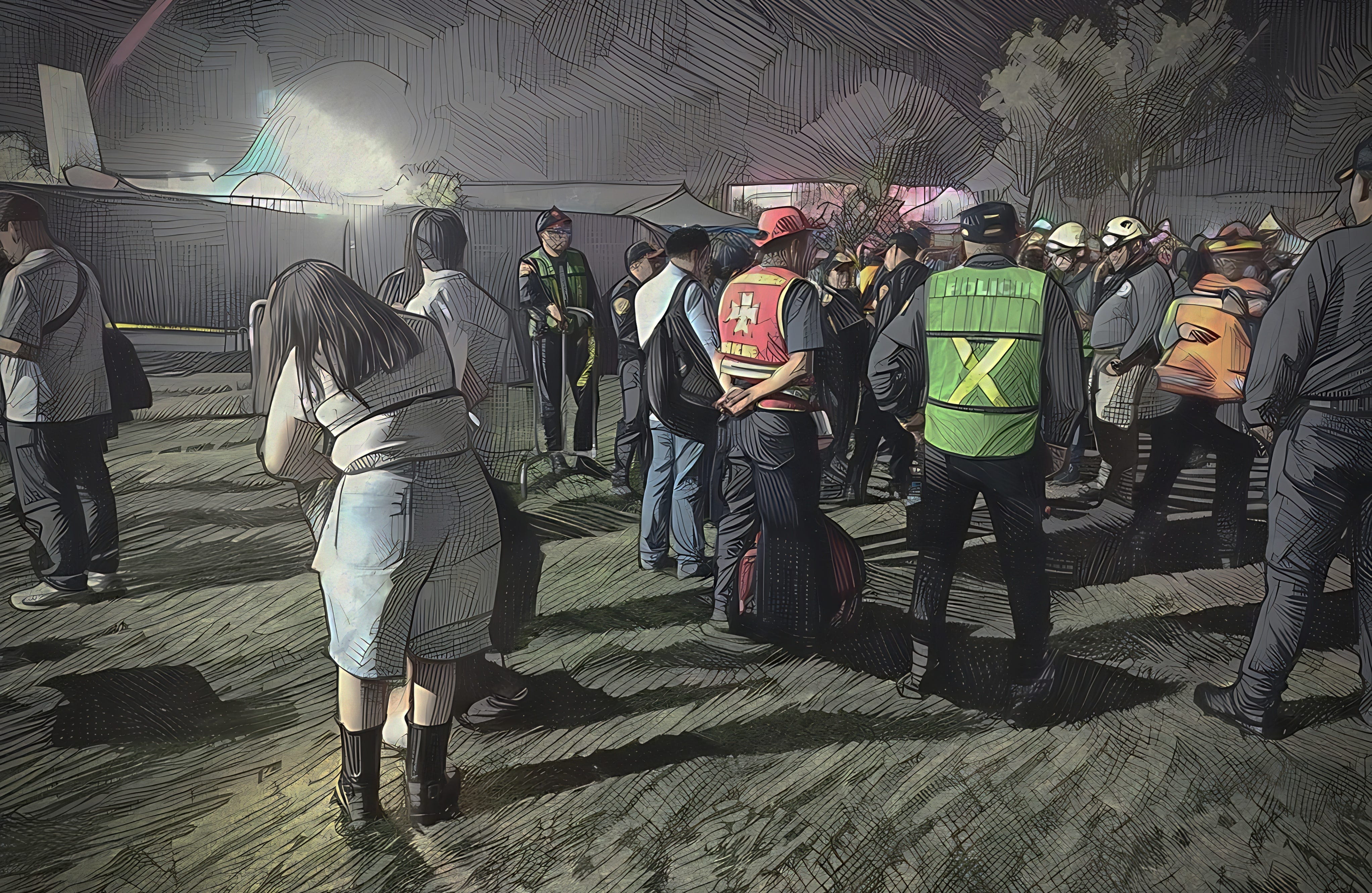 Tras el incidente, llegaron dos ambulancias y la Unidad de Rescate y Emergencias Médicas, mientras personal de seguridad acordonó la zona y pidió a los asistentes despejar el área, abstenerse de tomar fotos o videos.