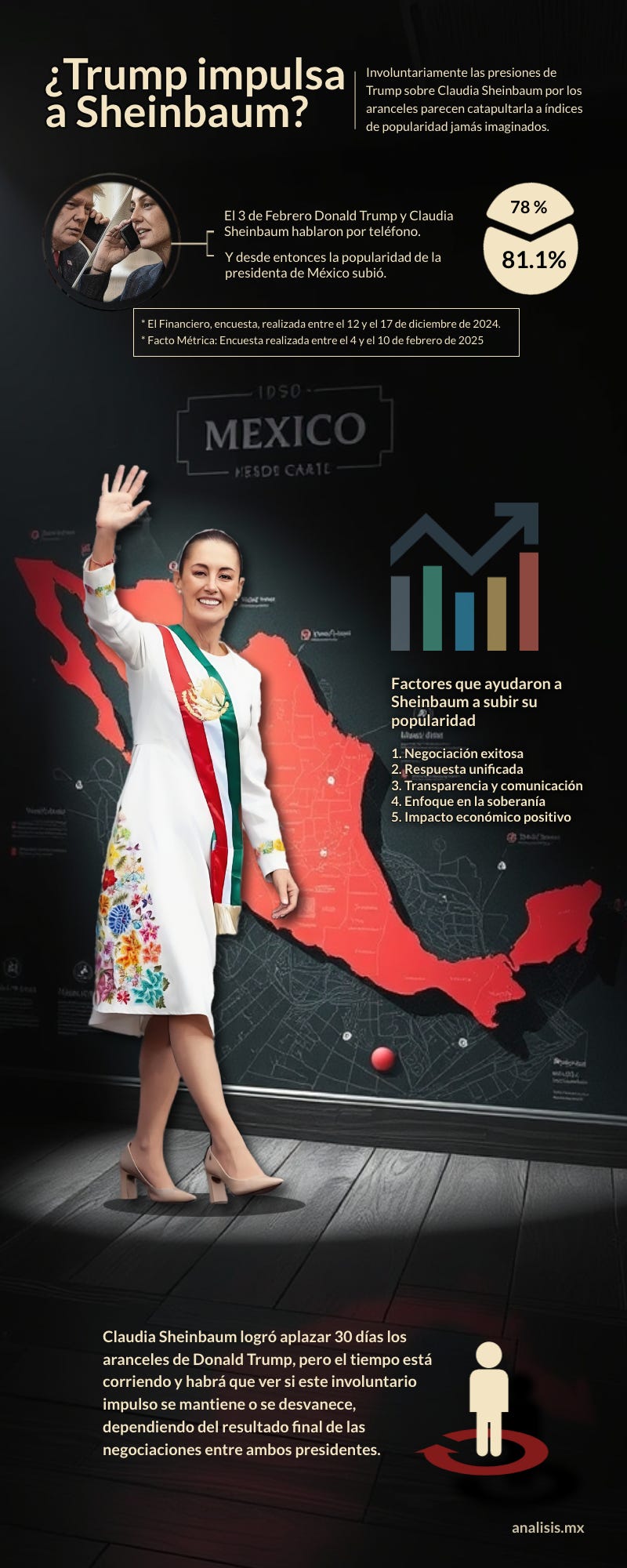 Después de la llamada, Sheinbaum subió al 81.1 por ciento (Facto Métrica encuesta realizada entre el 4 y el 10 de febrero de 2025).