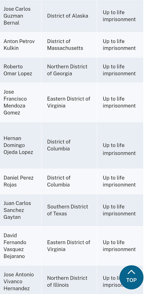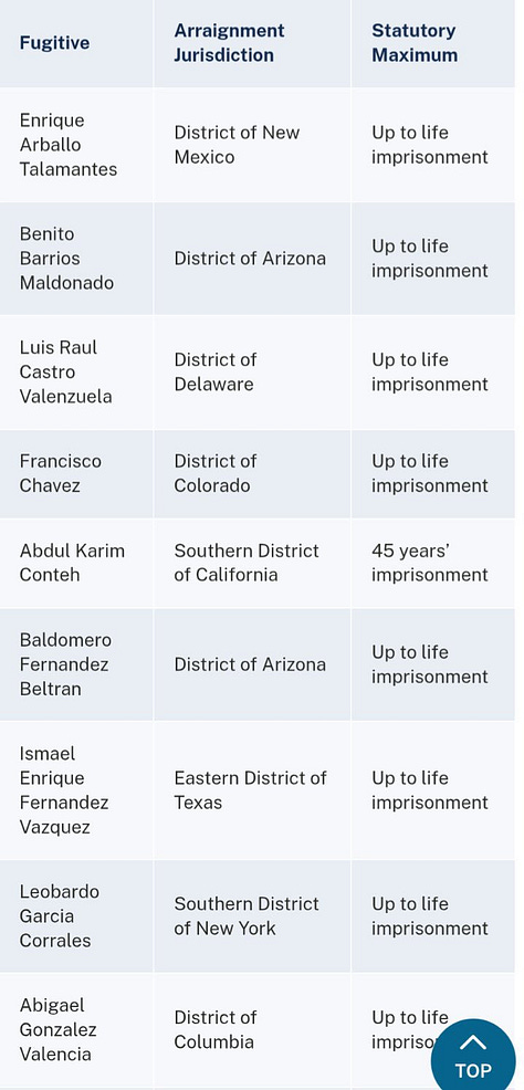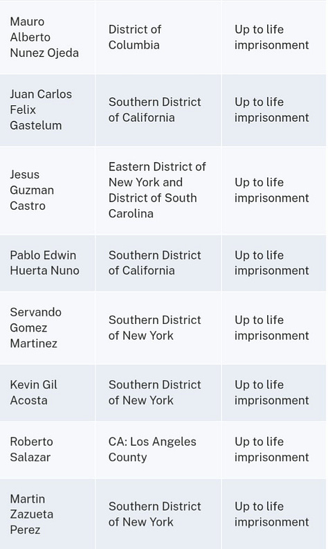 El Departamento de Justicia de EE.UU. publicó los nombres y cargos de 26 presuntos narcotraficantes entregados por México, con penas que incluyen cadena perpetua