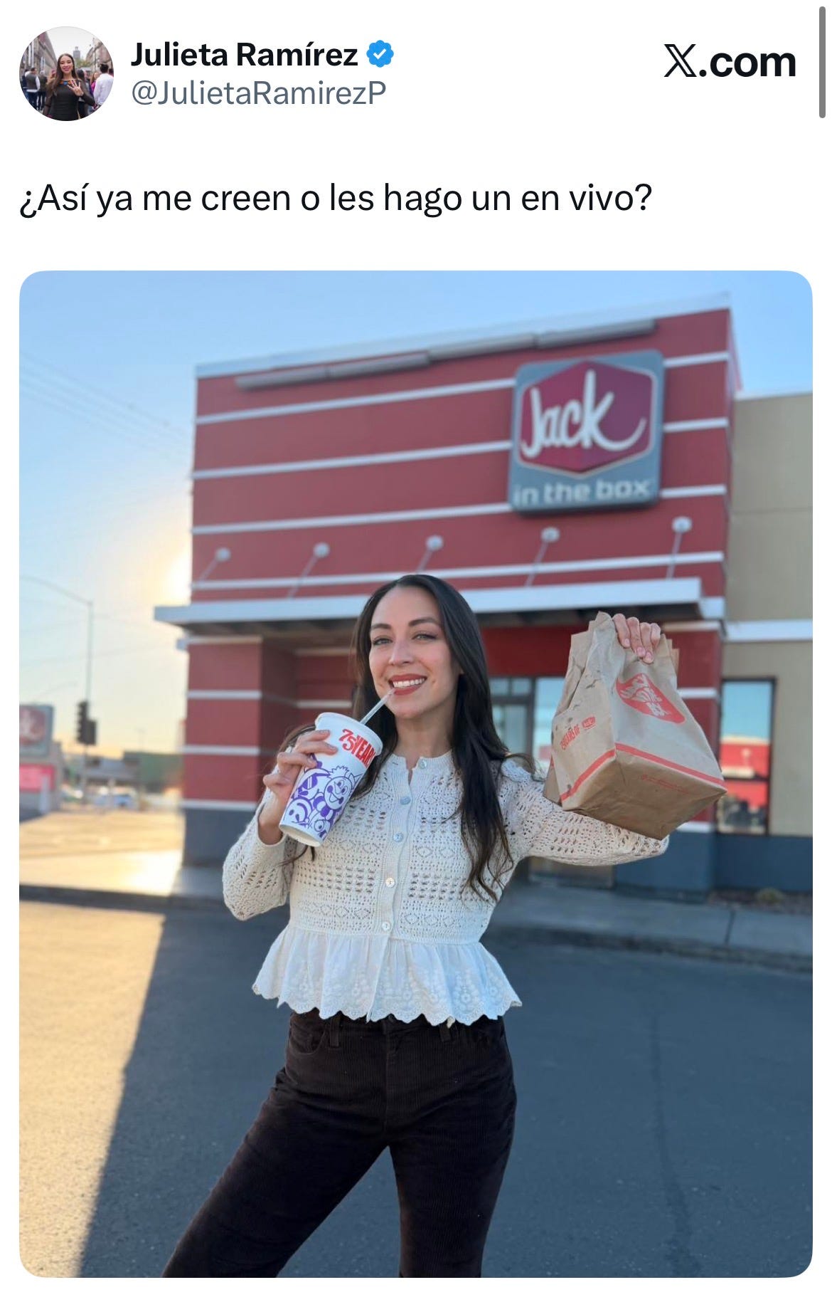 Baja California.- En medio de una oleada de rumores que la colocaban en la lista negra de Estados Unidos, la senadora morenista por Baja California, Julieta Ramírez, decidió responder con hechos: cruzó a Calexico, California, y grabó videos desde un Jack in the Box y una tienda Ross, presumiendo su entrada legal al país. “Ya pueden dormir tranquilos”, ironizó en TikTok, ofreciendo tacos y esperando a quienes la “invitaron” a Disney. El revuelo inició con el periodista Luis Chaparro, quien aseguró que su visa fue revocada hace un mes por presuntos riesgos de seguridad, similar a lo ocurrido con la gobernadora Marina del Pilar Ávila Olmeda, cuya visa sí fue cancelada por supuestos nexos con el crimen organizado.